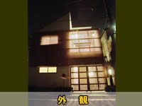 ・夜の外観。中から漏れる光が幻想的で、和の雰囲気を醸し出しています。